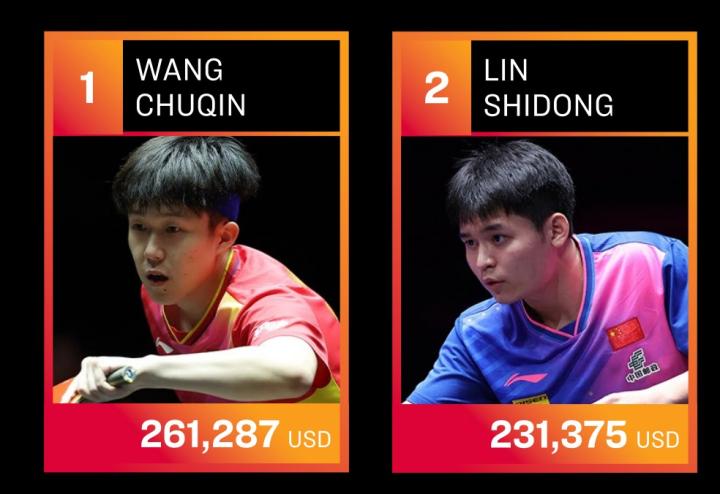 1、王楚钦261287美元(约合189万元人民币)