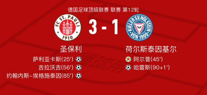 北京时间11月30日圣保利vs荷尔斯泰因基尔,约翰内斯-埃格施泰因得到全场最高的8.7分,阿尔伯斯得到全场最低的5.5分