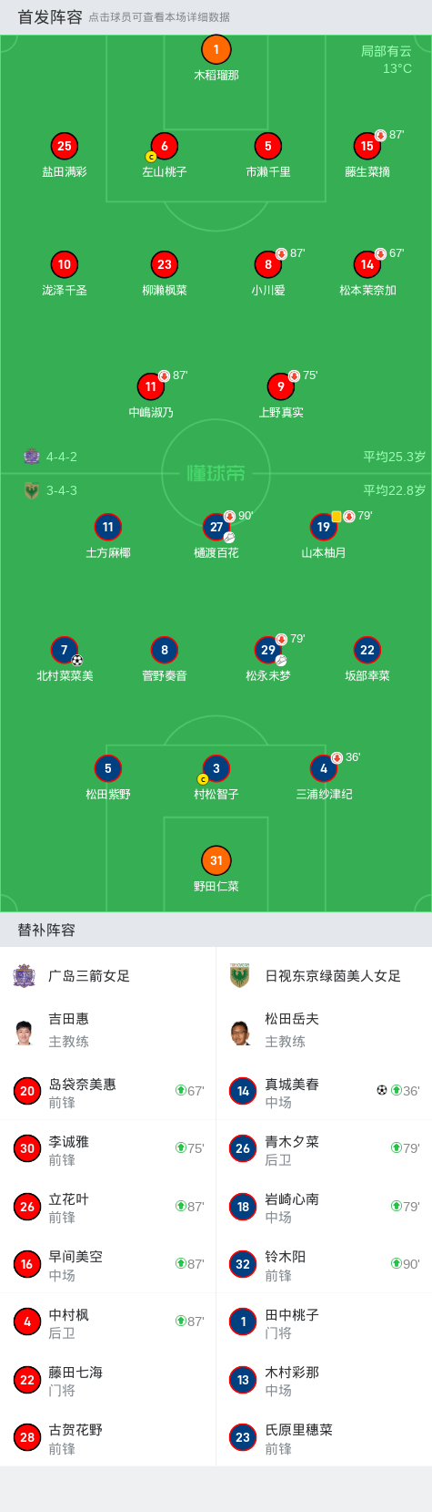 日视东京绿茵美人女足2-0广岛三箭女足,真城美春建功,北村菜菜美锦上添花