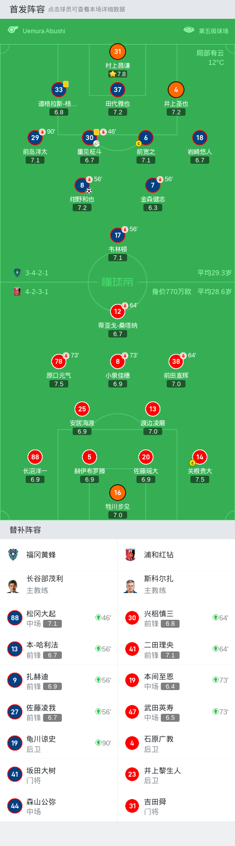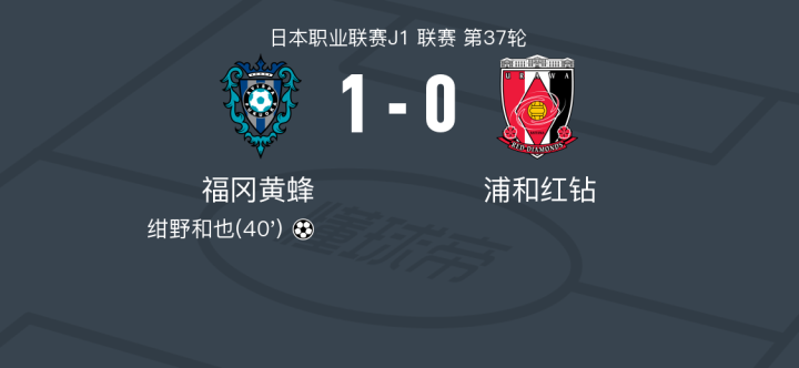 福冈黄蜂1-0浦和红钻,绀野和也制胜球
