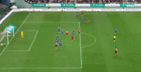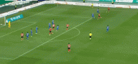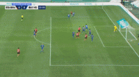 第21分钟,博扬尼奇禁区内射门,尹平国碰到皮球皮球击中立柱