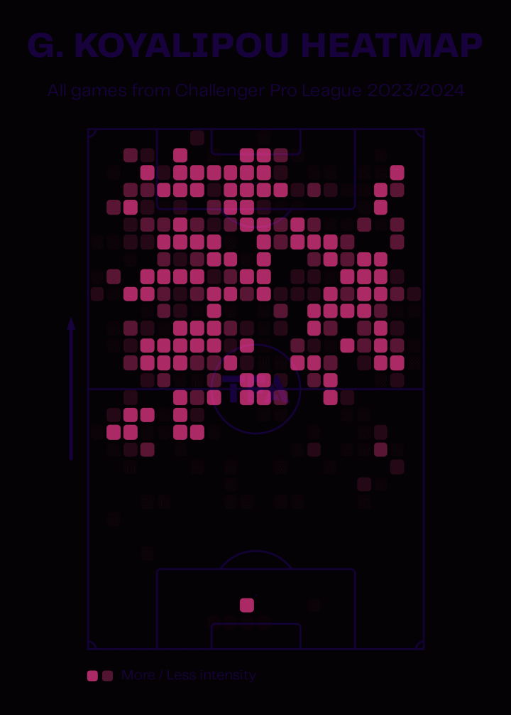 科亚利普在这个区域的存在对贝弗伦2023-24赛季的进攻输出至关重要,他在上赛季比乙联赛的所有球员中禁区内的触球次数排名第三,这位中非选手能够串联比赛并支持队友、组织进攻。