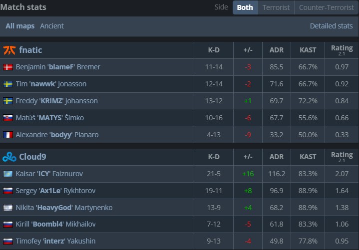 哈萨克斯坦新星ICY斩获21杀,C9轻取FNC进入1-1组。