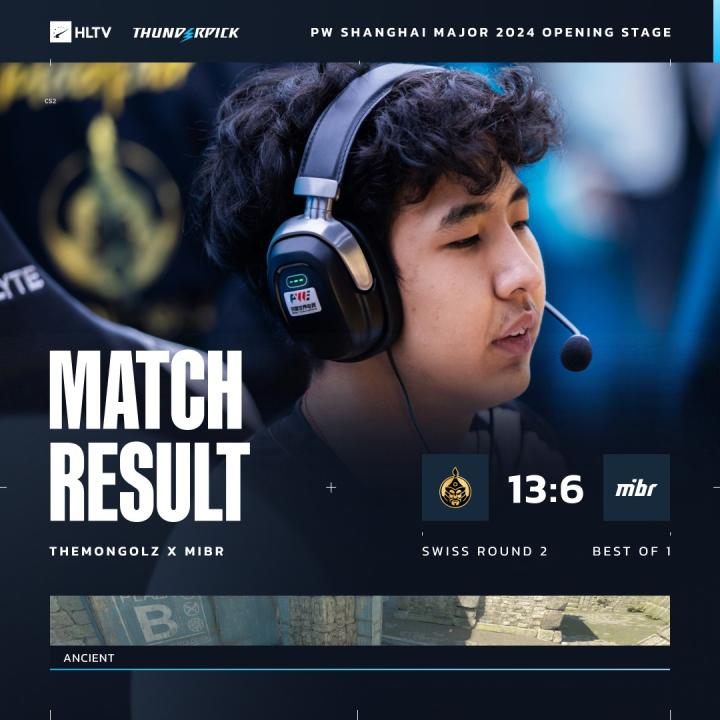 稳如老狗!蒙古队横扫赛事黑马MIBR,进入2-0组。