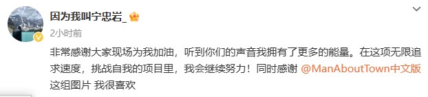 宁忠岩:感谢大家为我加油,听到你们的声音我拥有了更多能量沉默的聒噪 @懂球帝2024-11-30 21:0511月30日,速度滑冰世界杯北京站继续进行,中国选手宁忠岩在男子1000米速度滑冰比赛中获得铜牌。赛后,他也在自己的社交媒体发文向大家表达了感谢。宁忠岩表示:“非常感谢大家现场为我加油,听到你们的声音我拥有了更多的能量。在这项无限追求速度,挑战自我的项目里,我会继续努力!同时感谢ManAboutTown中文版 这组图片 我很喜欢。 ”此前,宁忠岩已经收获了男子1500米速度滑冰比赛的银牌。展开更多