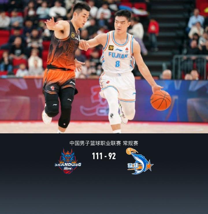 第四节山东马基斯-克里斯拿下4分,福建约瑟夫-杨拿下6分,最终山东111-92战胜福建