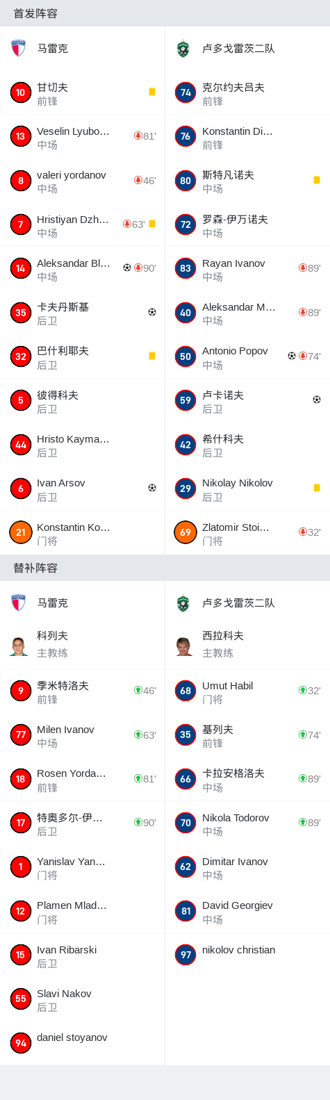 第31分钟,马雷克球员Ivan Arsov打入一球。