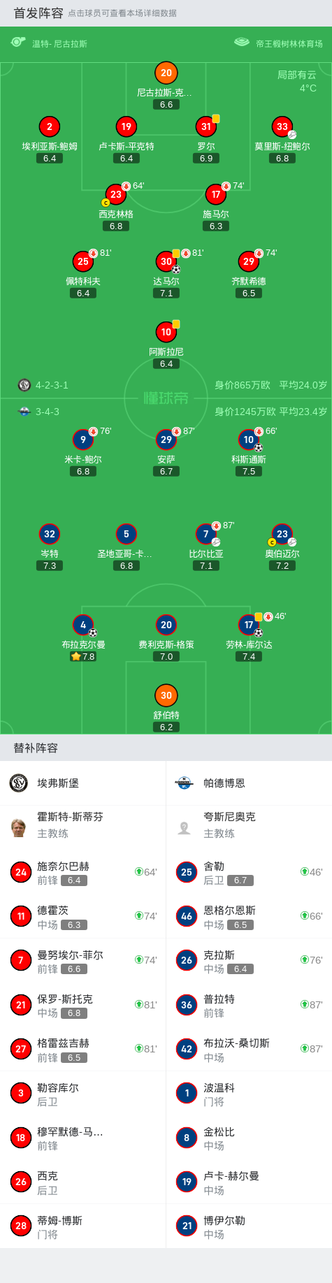 第63分钟,帕德博恩球员比尔比亚助攻科斯通斯打入一球。