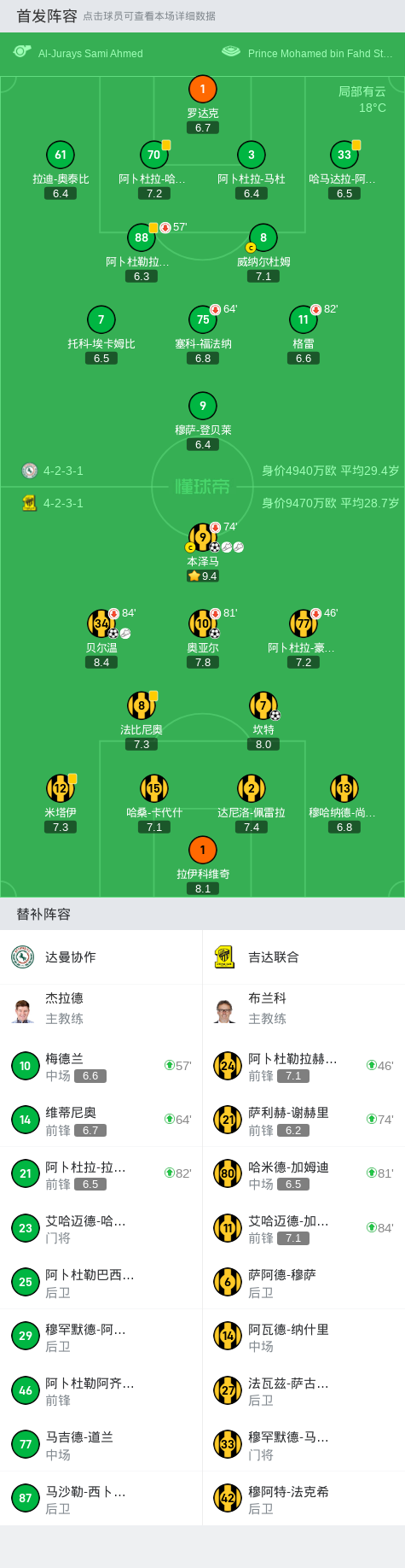 第71分钟,本泽马助攻,贝尔温强行突破完成破门,吉达联合4-0达曼协作