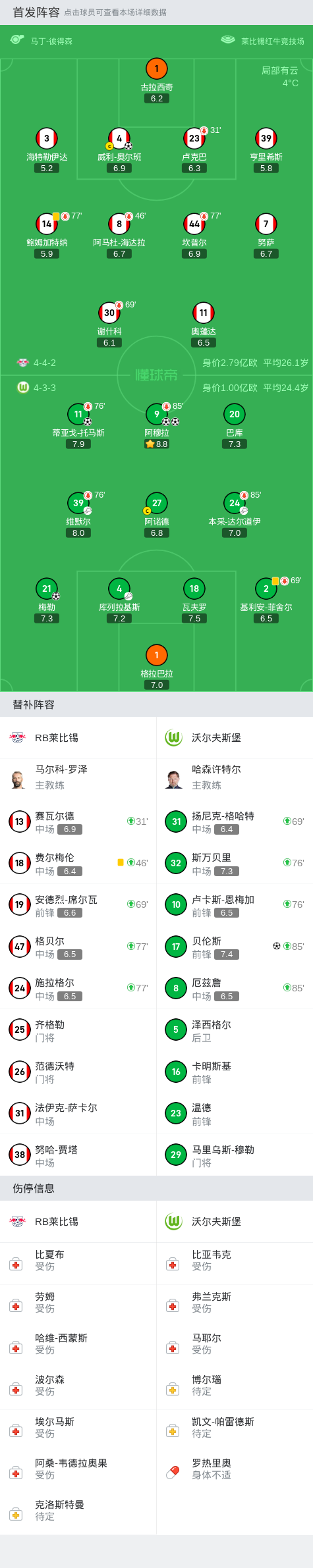 第69分钟,莱比锡扳回一城,因越位在先被判无效