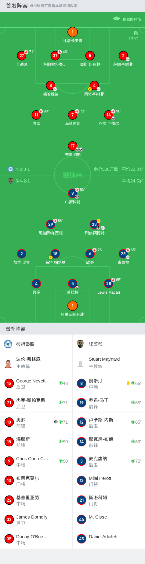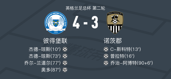 彼得堡联4-3诺茨郡,杰德-琼斯双响,奥多破门
