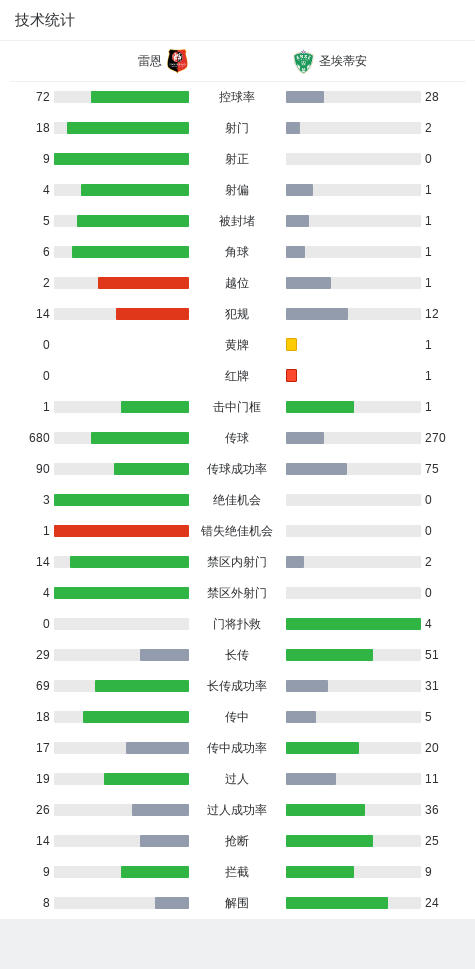 第37分钟,圣埃蒂安球队卡法罗吃到红牌。