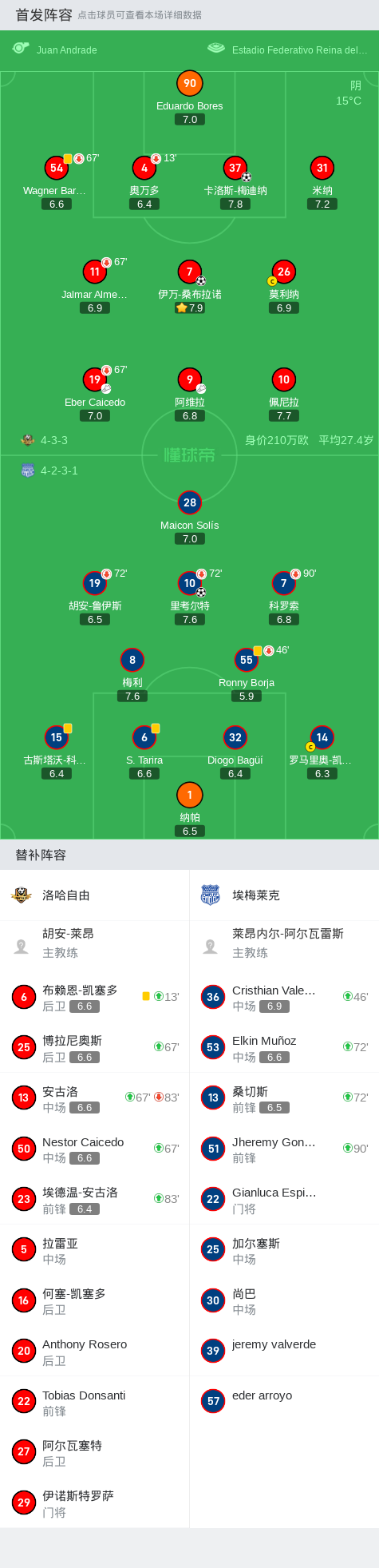 第4分钟,洛哈自由球员Eber Caicedo助攻伊万-桑布拉诺打入一球。