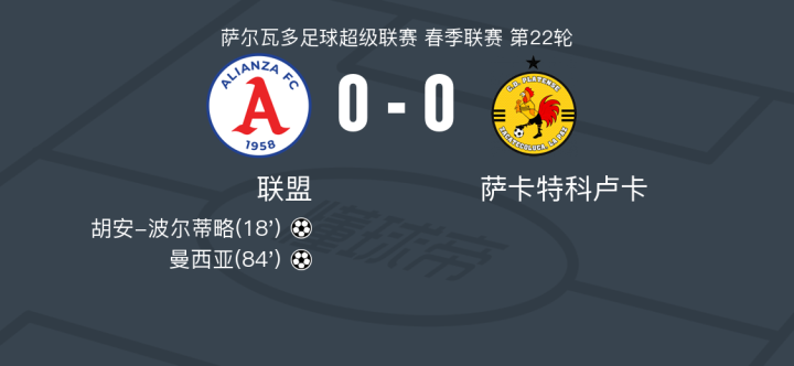 在萨尔瓦多足球超级联赛春季联赛第22轮的比赛中,联盟队坐镇主场迎战萨卡特科卢卡队。比赛中,联盟队的胡安-波尔蒂略率先为球队打开局面,随后曼西亚再度建功,帮助联盟队扩大领先优势。最终,联盟队凭借两位球员的出色表现,成功捍卫了主场荣誉,以出色的表现结束了这场对决。