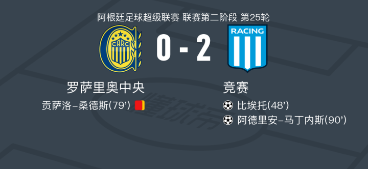 竞赛2-0罗萨里奥中央取阿超5连胜,比埃托建功,阿德里安-马丁内斯锁定胜局