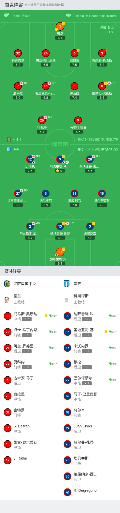 第79分钟,罗萨里奥中央球队贡萨洛-桑德斯吃到第二张黄牌。