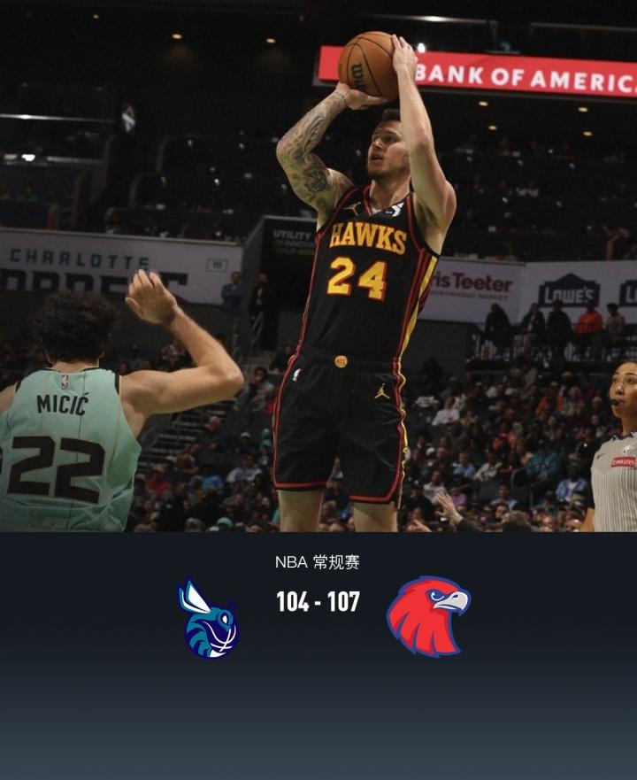第四节黄蜂布兰登-米勒拿下11分,老鹰亨特拿下9分,最终黄蜂104-107不敌老鹰