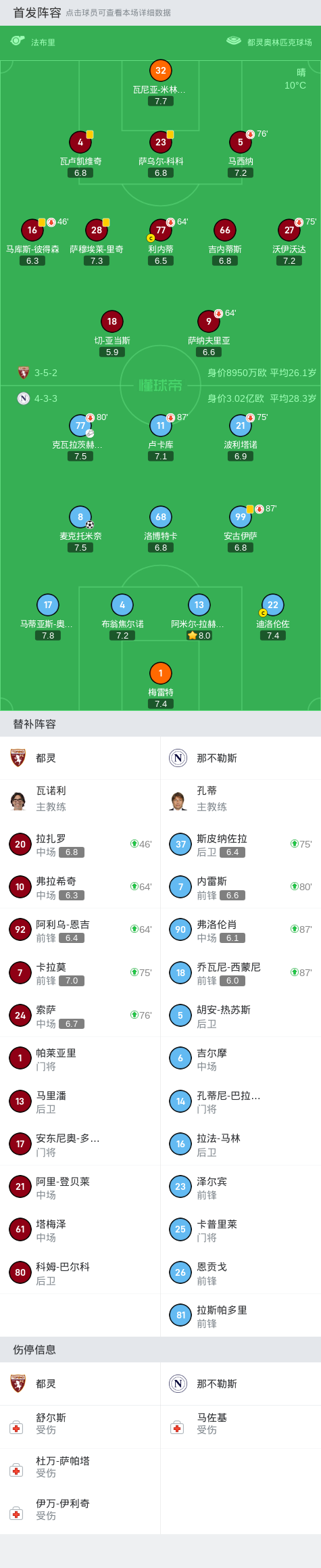 在意大利足球顶级联赛第14轮的较量中,都灵坐镇主场迎战那不勒斯。比赛中,那不勒斯的克瓦拉茨赫利亚送出精彩助攻,麦克托米奈成功破门。最终,那不勒斯凭借这一进球,以1比0小胜都灵,带走了宝贵的三分。
