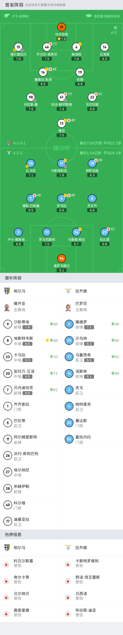 拉齐奥客场1-3帕尔马,罗韦拉进球被吹+失误送礼,塔蒂建功