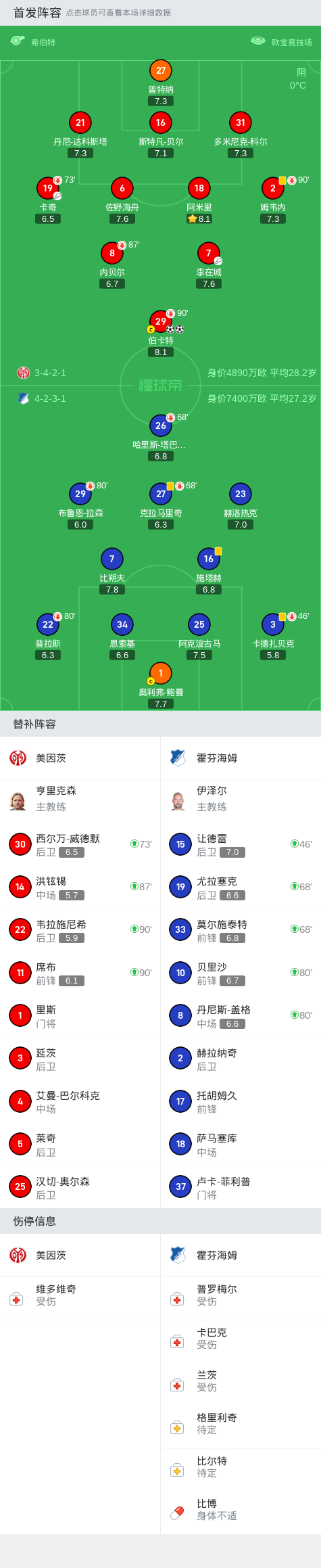 美因茨2-0霍芬海姆,伯卡特梅开二度,李在城送助攻