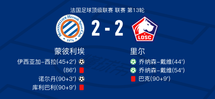 蒙彼利埃vs里尔球员评分:乔纳森-戴维8.3分,若尔丹-费里5.9分