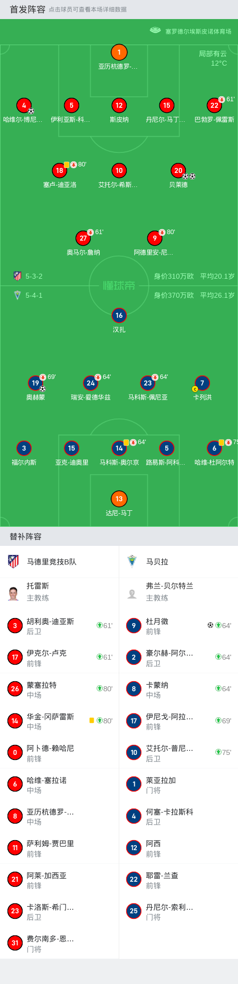 第31分钟,马德里竞技B队球员贝莱德打入一球。