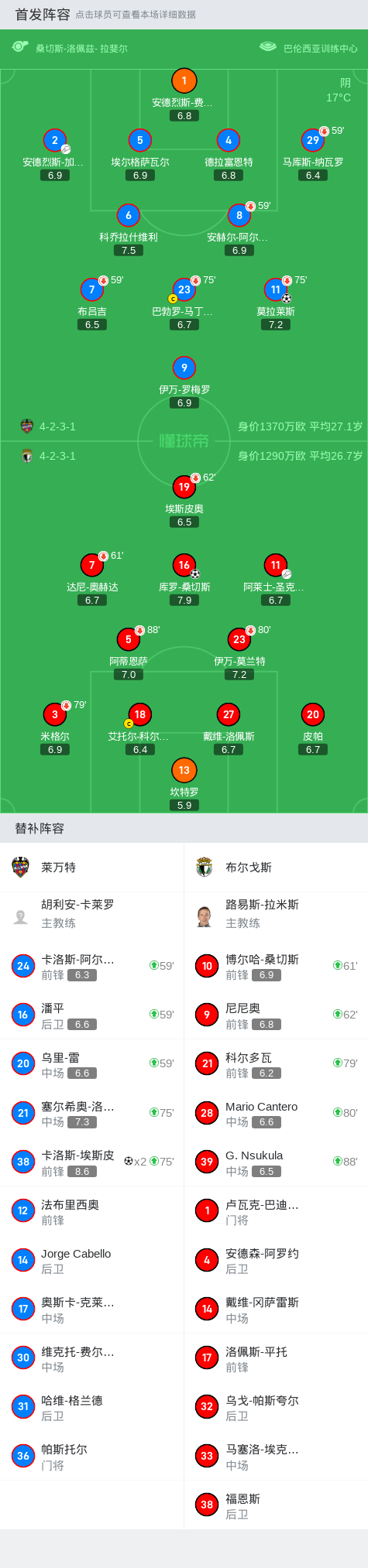 第20分钟,布尔戈斯球员阿莱士-圣克里斯助攻库罗-桑切斯打入一球。