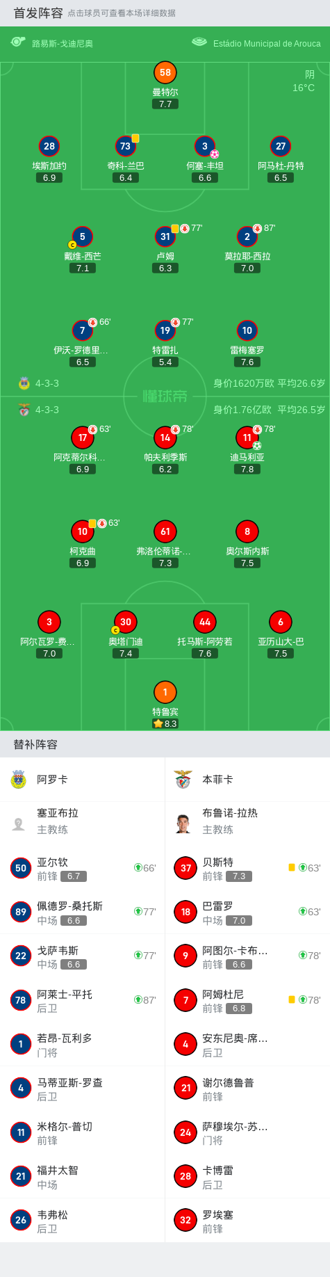 在葡萄牙足球超级联赛第12轮的较量中,阿罗卡坐镇主场迎战本菲卡。比赛中,阿罗卡的何塞-丰坦不慎将球送入自家球门。随后,本菲卡的迪马利亚通过点球机会再下一城。最终,阿罗卡以0-2不敌本菲卡,未能在主场收获积分。