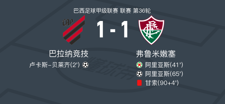 巴拉纳竞技1-1弗鲁米嫩塞,卢卡斯-贝莱齐破门,阿里亚斯扳平
