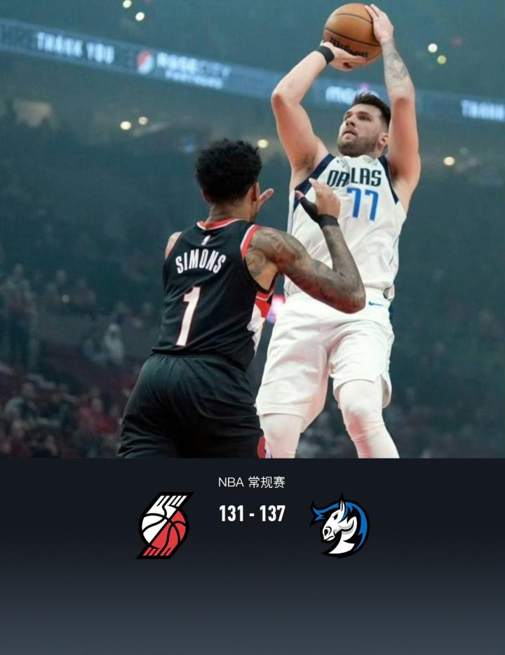 北京时间12月2日,NBA常规赛开拓者主场迎战独行侠,本场独行侠东契奇复出,欧文缺阵。独行侠多次将分差拉大至两位数,开拓者总能追上比分,双方紧咬比分,最后时刻开拓者出现致命失误,独行侠把握机会连续罚球命中锁定胜局,最终独行侠137-131险胜开拓者迎4连胜。