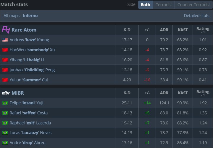 第18回合,RA存钱局,insani罕见枪法变形双方前期1换1,MIBR打A,RA重守打出2换3,kaze赢下残局,8-10。