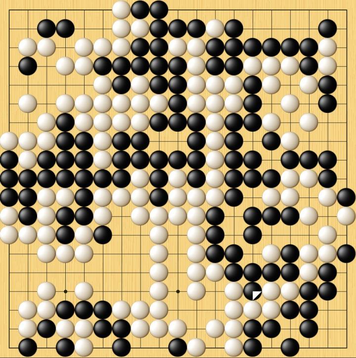 本盘两人早早进入混战局面,黑棋在序盘和中盘先后吃掉右上和右下后掌握实地优势。此后谢尔豪下出一些问题手但并未亏损太多目数,最终黑中盘273手1.5目胜出。