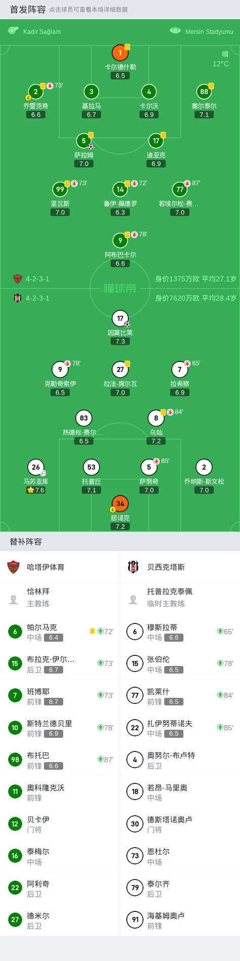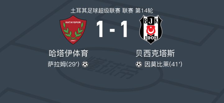 哈塔伊体育1-1贝西克塔斯,萨拉姆先拔头筹,因莫比莱扳平比分