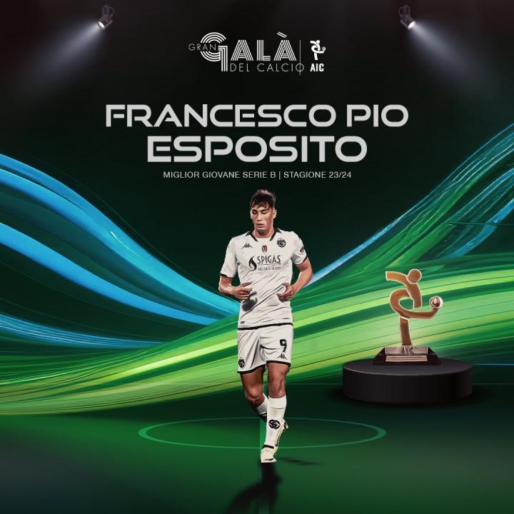 意大利球员协会年度最佳的颁奖典礼在北京时间12月3日举行,在意乙2023-24赛季年度最佳年轻球员的评选中,国际米兰外租斯佩齐亚的锋线新星皮奥-埃斯波西托成功当选。
