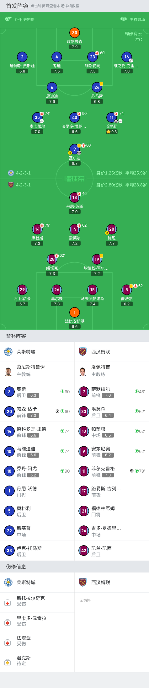 第3分钟,哈努斯直塞,瓦尔迪插上破门先拔头筹,莱斯特城1-0西汉姆联