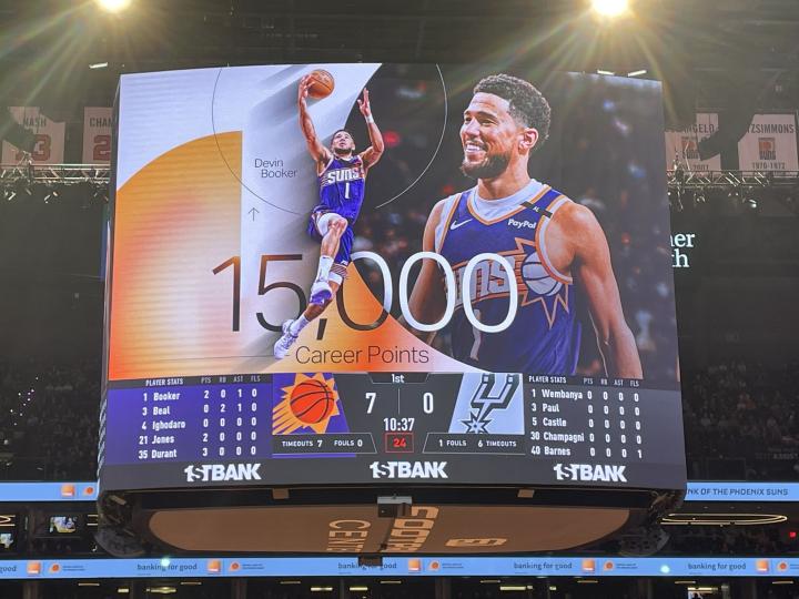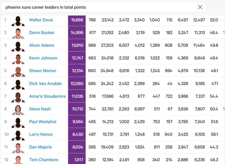 布克生涯常规赛得分突破15000分,NBA历史第九年轻达成此成就尼古拉约基奇 @懂球帝2024-12-04 11:04北京时间今日,在NBA杯的比赛中,太阳队在主场对阵马刺队。本场比赛前,德文-布克的常规赛生涯总得分为14999分,他一开场便命中一记中投,生涯常规赛得分突破15000分大关。太阳主场也在布克达成此成就后向其祝贺。目前布克的常规赛总得分排在太阳队史第二位,仅次于沃尔特-戴维斯的15666分。他也成为了NBA历史上生涯得分突破15000分的第九年轻的球员。展开更多