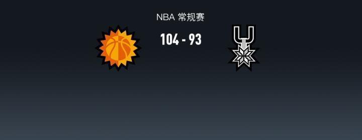 第四节,马刺持续三分试投不中,太阳布克带队一波15-2将分差拉大至17分,随后马刺顽命反扑无果,最终太阳104-93战胜马刺。