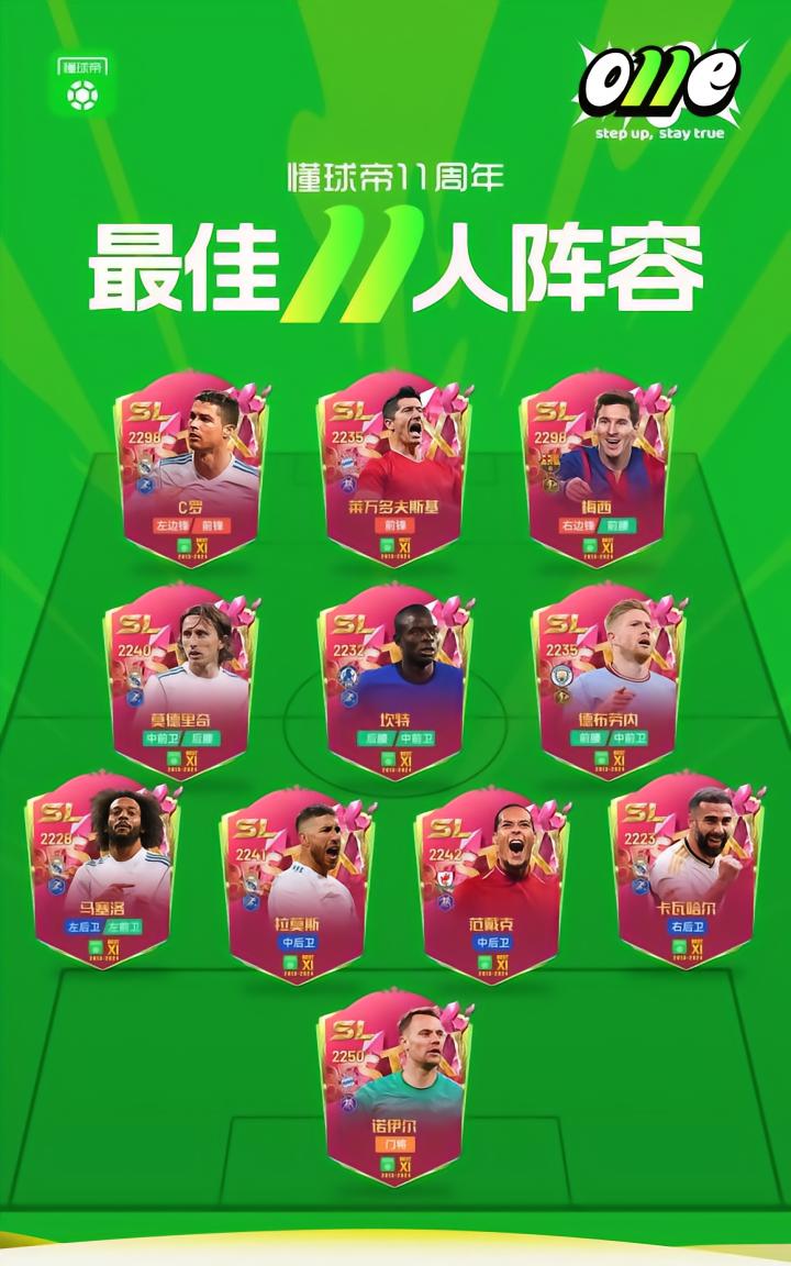 懂球帝11周年最佳11人阵容: