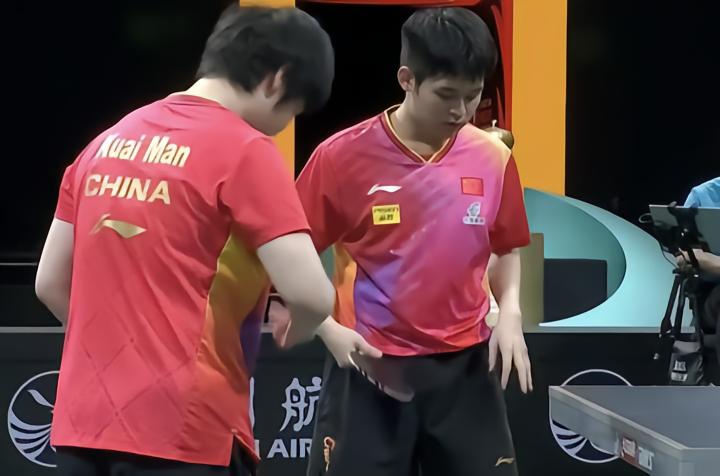 第三局比赛中,林诗栋/蒯曼以5-2的比分领先,德国队叫了暂停。暂停回来,林诗栋/蒯曼的配合未达预期效果,德国组合连续追分,林诗栋拧拉得分,中国组合率先以10-6拿到局点,万远变化落点,连救两个局点,林诗栋/蒯曼以11-8取胜。
