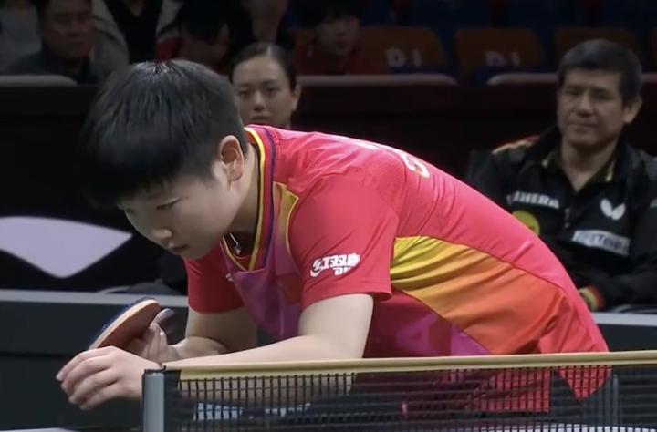 第一局比赛中,孙颖莎迅速进入了状态,以10-1拿到局点,克利救回1个局点,孙颖莎发球抢攻得分,以11-2先下一局。