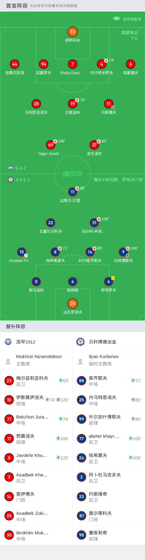 浩罕1912 4-3贝科博德冶金,alisher khayrullayev失点