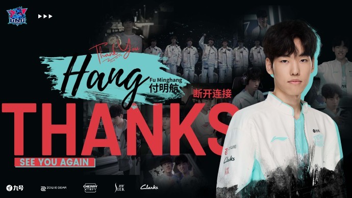 值得注意的是,在LNG官方的配图中,Gala和Hang都有“See you again”的字样,而Scout却没有;