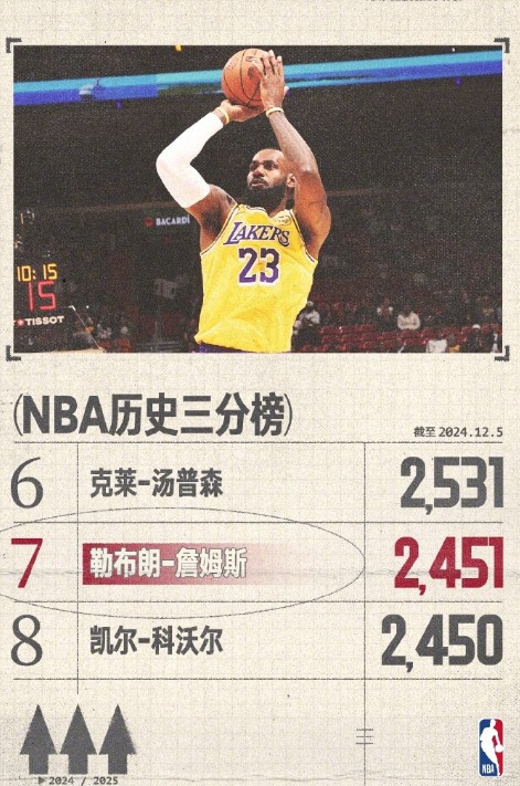 打破三分荒,詹姆斯投进三分正式超越科沃尔独享历史三分榜第7南京伦敦体育场小杨 @懂球帝2024-12-05 10:39北京时间12月5日,湖人对阵热火的比赛第三节中,詹姆斯弧顶三分命中,至此生涯三分命中数来到2451记,超越科沃尔(2450记),独占历史三分榜第7位!近期,詹姆斯外线失准,三分连续打铁,但本场比赛手感迎来复苏。比赛第三节,詹姆斯弧顶接浓眉手递手传球,自信出手命中三分,生涯三分命中数来到2451记,独占NBA历史三分榜第7位!展开更多