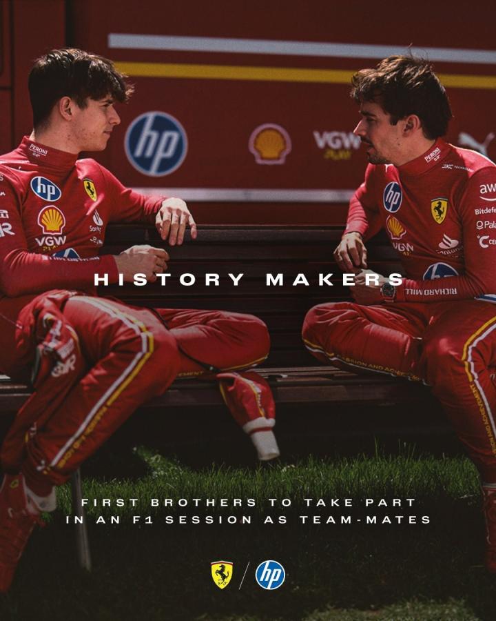 北京时间12月4日晚,F1法拉利车队官方消息,夏尔-勒克莱尔和弟弟亚瑟-勒克莱尔将作为队友,搭档出战2024年F1阿布扎比大奖赛一练。