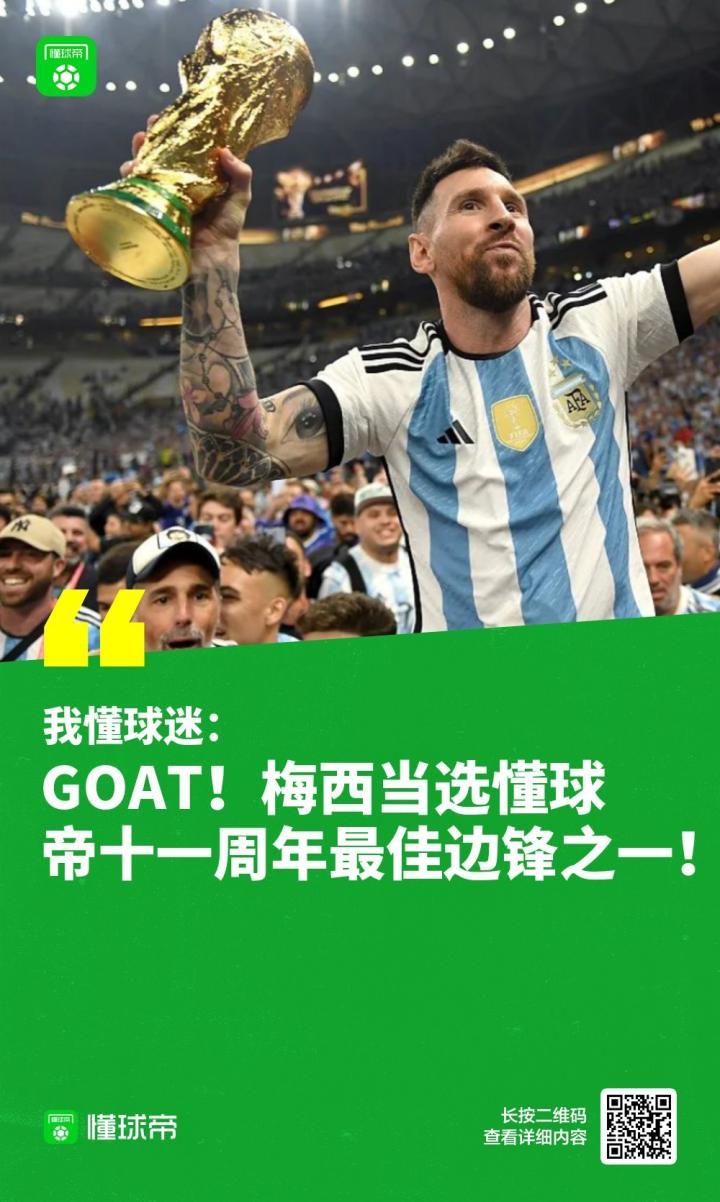 懂球帝十一周年最佳11人评选:梅西当选最佳边锋之一!