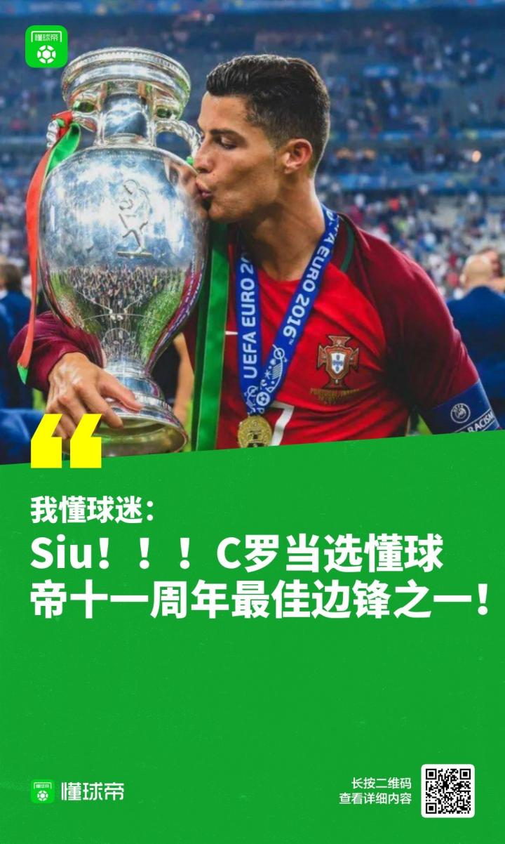 懂球帝十一周年最佳11人评选:C罗当选最佳边锋之一!