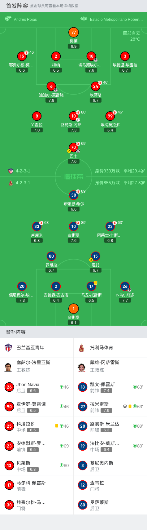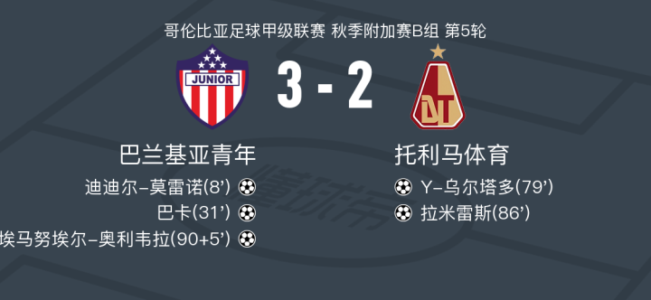 下半场补时第5分钟,巴兰基亚青年球员埃马努埃尔-奥利韦拉打入一球。