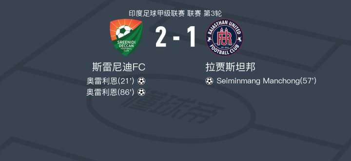 斯雷尼迪FC2-1拉贾斯坦邦,奥雷利恩包办2球
