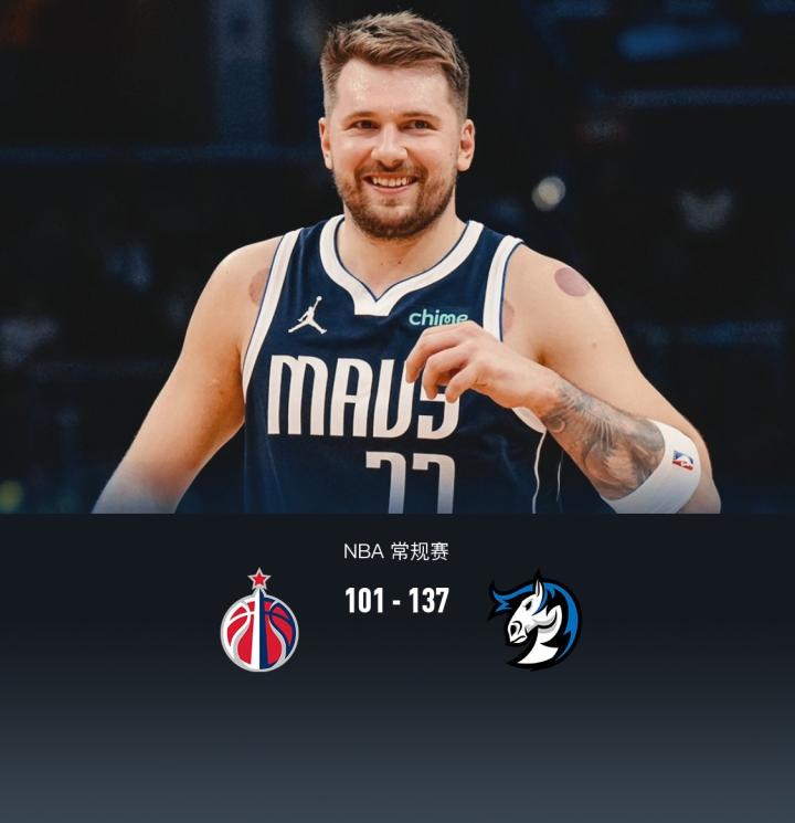 独行侠7人上双137-101大胜奇才迎6连胜!东欧合砍46分