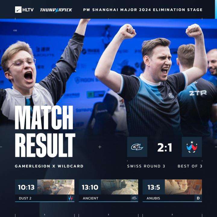 北京时间12月6日,CS2上海Major淘汰赛阶段瑞士轮继续进行,Vitality 2-0横扫MIBR取得3胜0负直接晋级八强;GamerLegion完成让一追二进入1-2组,Wildcard则吃到三连败被淘汰。